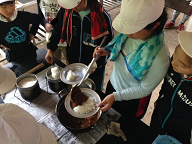 ようやくカレーが完成しました。みんなで協力し合いながら作ったカレー、果たしてお味はいかがかな?おいしいに決まってるよね。では、いただきま〜す。(教頭のつぶやきより)