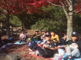 生駒山の中を通って、紅葉がきれいな山麓公園でお弁当を食べたり、アスレチックをしたりして楽しい一日を過ごしました。