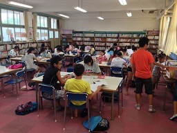 夏休み中、プール水泳指導とともに図書館開放をしています。本校で、唯一クーラーのある図書室、多くの子どもたちが本を読んだり、自主学習をしたりしています。