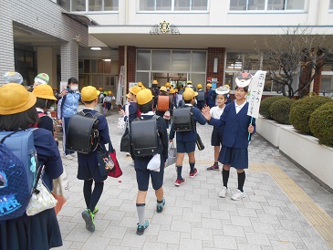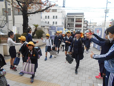 12月10日(月)今日からあいさつ運動がはじまりました。14日(金)まで「自分からあいさつをして、あいさつの輪を広げる」ことを目標にしています。児童会の代表が玄関に立ち、登校してきた子にハイタッチあいさつをしていました。