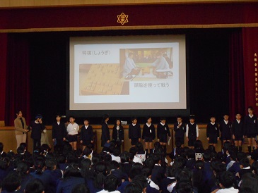 12月13日(木)朝の児童集会で、ゲームクラブの発表がありました。