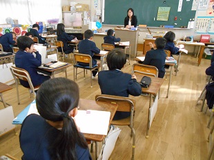1月7日(月)3学期が始まりました。始業式の後、教室では冬休みの出来事を話したり、課題を提出したり、作品を掲示したり、3学期の目標を発表し合ったり、もう教科の学習を始めたりしていました。