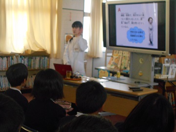 薬の種類や服用の仕方を実験なども入れながら学んだ後、喫煙や飲酒による健康に及ぼす害などを教えていただきました。
