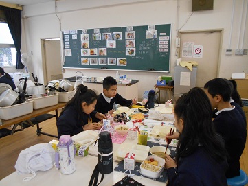 2月14日(木)は6年1組、15日(金)は6年2組が小学校生活最後の調理実習をしました。メニューは、お弁当のおかず作りでした。内容はウインナー、野菜のベーコン巻き、卵焼き、プチトマト、ブロッコリーです。さすが6年生です。手慣れた手つきで、段取りよく調理を進めていました。できあがったおかずを、家から持ってきたお弁当箱に彩りよく詰めていました。最後に、給食のごはんを入れて完成です。みんなおいしそうに食べていました。