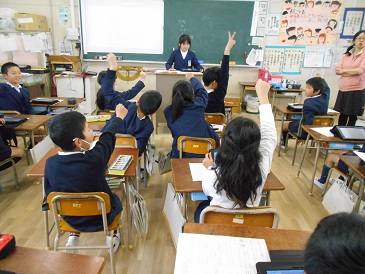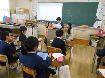 3月4日(月)3年生が国語の「理由がわかるようにつたえよう」の学習に取り組んでいました。自分の考えた絵文字を写真で撮り、自分のタブレットから一人一人のタブレットに配信して、その絵文字の説明と考えた理由を話していました。楽しい絵文字がいろいろありました。