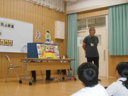 今日の3時間目、梅田サポートセンターの元お巡りさんに来ていただいて、非行防止教室がありました。