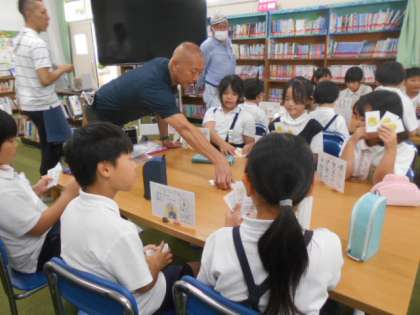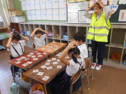 2年生は防災カルタです。地域の防災リーダーの方が、カルタを読んでくださいました。「競争じゃなくて、しっかり聞いて、何が大切なのか、理解してくださいね。」と教えていただいて、楽しみながら、安全について学ぶことができました。
