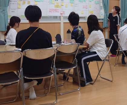 研究授業の後は、講師の先生をお招きして、今日の授業はどうだったか、子どもたちはしっかりと活動できていたかなどについて話し合う時間を持ちました。