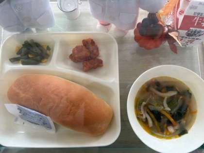 今日は、まぐろを油であげて、ケチャップと赤みそ、砂糖を混ぜて作ったたれをからめた「まぐろのオーロラ煮」が出ます。