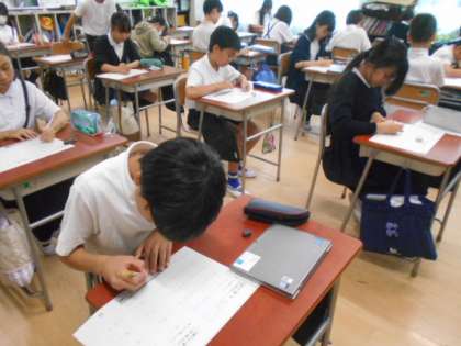 6年生の教室をのぞくと、みんな静かに学習に取り組んでいました。