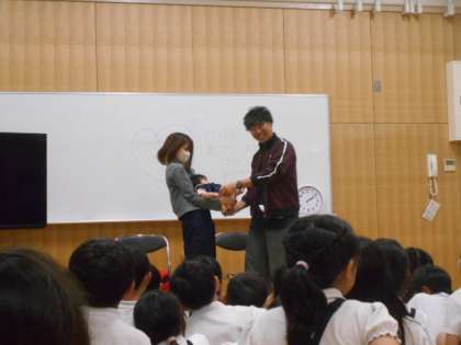 5時間目に、育休中の先生とお連れ合い、そしてもうすぐ4か月になる赤ちゃんが、学校に来てくれました。