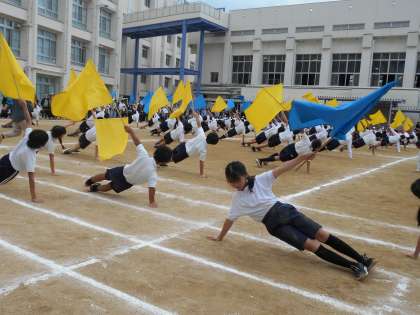 フラッグの演技は、仲間と息を合わせて作り出す、美しい色のまとまりと気合のこもったフラッグの音に感動しました。海老江東小学校の6年生として、立派な姿を見せてくれました。