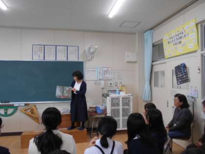 読書週間の今日、先週に引き続き福島区の読み聞かせサークル「マトリョーシカ」の皆さんが来ていただいて、5,6年生にお話会をしてくださいました。
