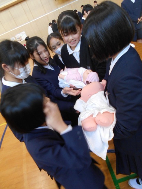 赤ちゃん人形を抱っこしたりなどの体験活動をしました。