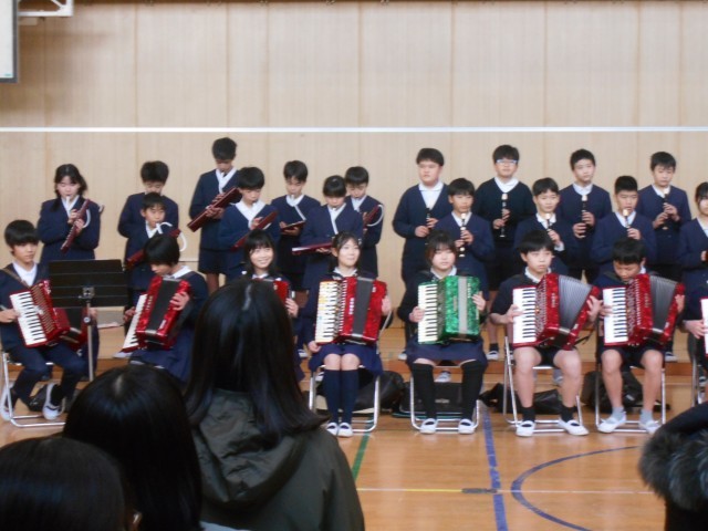 講堂に響きわたります。合奏は「情熱大陸」。難しい曲でしたが、一生懸命練習して、息の合った演奏を堂々と披露してくれました。