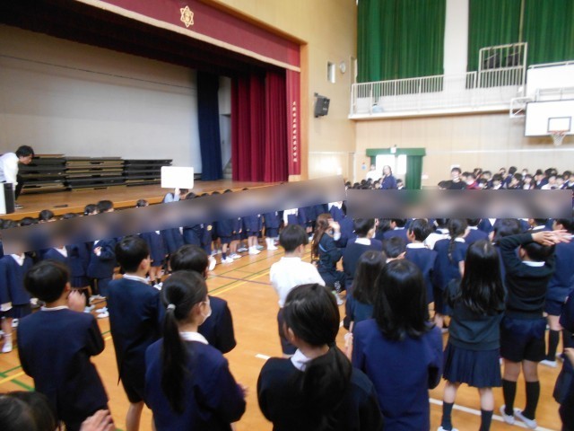2年生から6年生までのおにいさん、おねえさんたちが、あたたかい拍手で迎える中、
