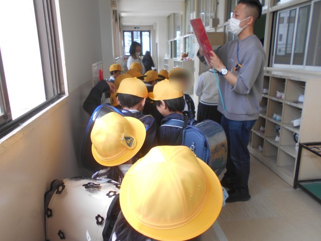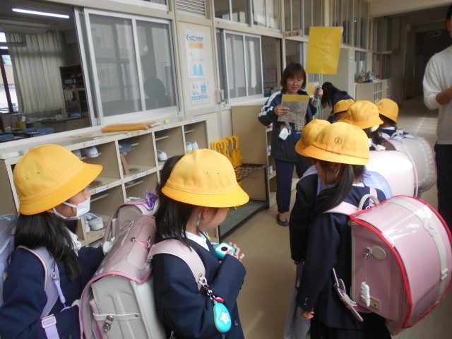 1年生は、4つの方面に分かれて、教員先導のもと集団下校をしています。