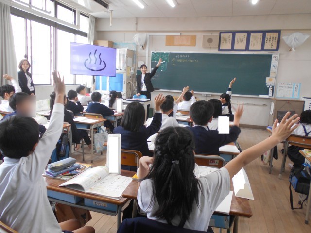 1組の教室をのぞくと、「♨」などの地図記号を当てるクイズに取り組んでいて、元気に手を挙げて答えていました。