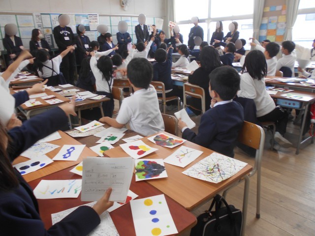 4年生は、1組が図工「アートカードでカルタ」、2組が国語「漢字辞典の使い方」の学習でした。