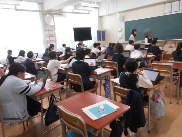 児童アンケートはそれぞれの学習者用端末から回答します。初めてのことでしたが、説明を聞いて、スムーズに回答できていました。