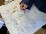 2年生が図画工作の学習で、ストローを使って動く仕組みをつくっています。太いスト...