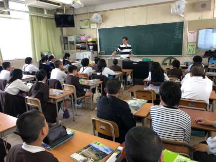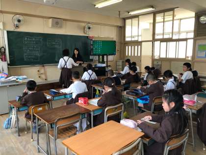 5年生は、社会科の学習をしています。大気層の厚さを考えました。