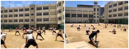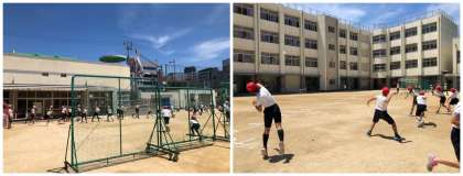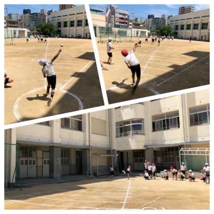 快晴のもと、全学年でソフトボール投げを校庭で行いました。