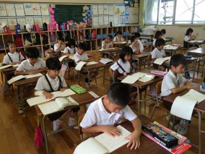 クラス全員で声をそろえて読んでいました。