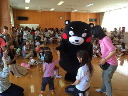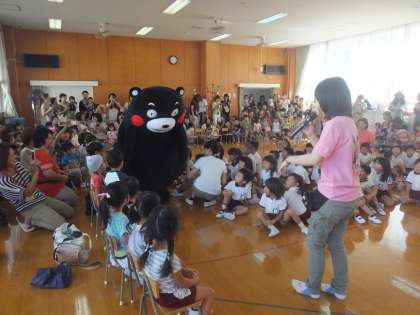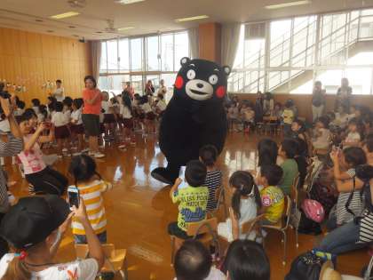 みんなみんな、とびっきりの笑顔で「くまもん」をお迎えました。