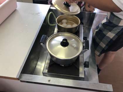 ゆで卵とほうれん草のお浸しを作りました。