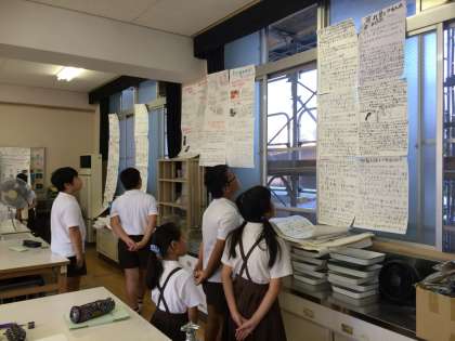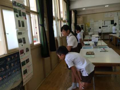 3・4・5年の子ども達は、理科の時間に、6年生の自由研究の作品を見学して、