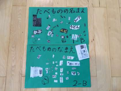 「たべもの」の名前を色画用紙に張り付けていきます。