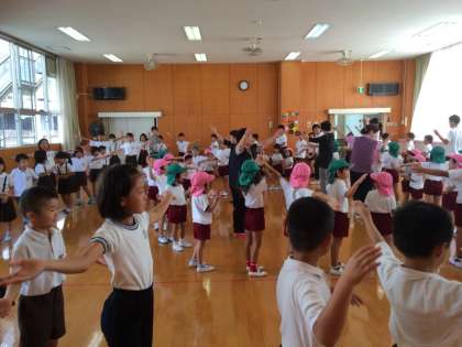 さくら組、まつ組、小学生1・2年生と集会委員4〜6年生の子ども達が