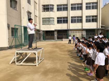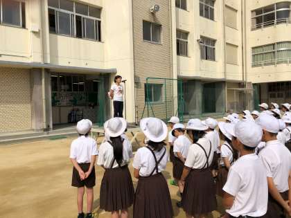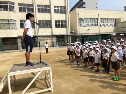 校長先生から、「熱中症にならないようにこまめに水分を補給すること」「手洗い、汗拭きをしっかりすること」お話がありました。