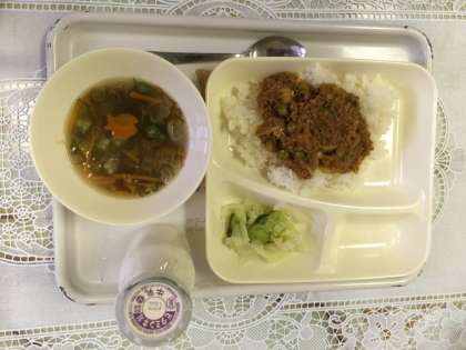 「校長先生、今日は『ラッキーにんじ』」がスープに入っていますよ。」