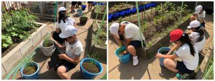 みんな手が泥だらけになりましたが、栄養分のある土のおかげで、バケツに植えたときよりも随分大きく成長しました。