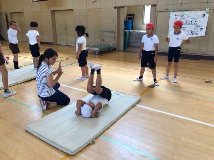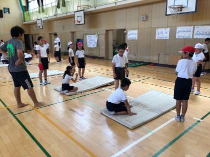 子ども達の体力・運動能力を高める取り組みの一環として、今週からマット運動の「チャレンジタイム」が始まりました。