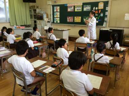 2年 栄養教諭が食育の学習「食べ物の働きを知ろう」をしました。