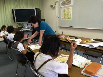 4年 教室と多目的室、2つに分かれて少人数学習をしました。