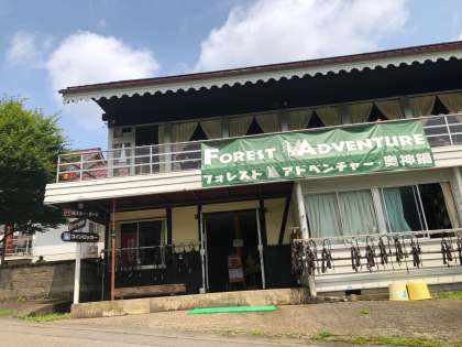 バスを降りて、奥神鍋スキー場の麓にあるフォレストアドベンチャーの山小屋に到着しました。