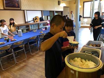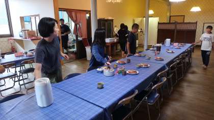 食事係の子ども達が、宿舎の方と一緒に夕食の準備をしました。