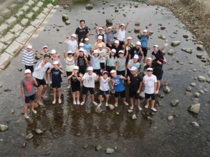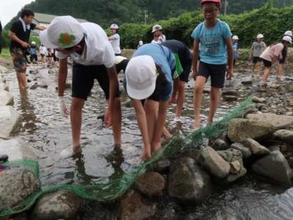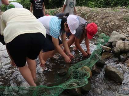 高原亭の方に、魚つかみのコツを教えていただいてみんな川へ入りました。