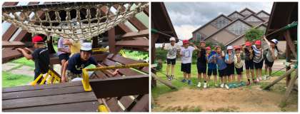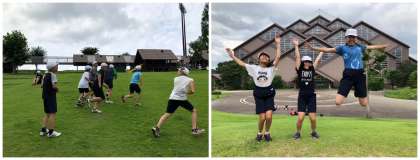飯盒炊爨の後は、八反の滝に行く予定でしたが、先日の大雨で落石があったため、但馬ドーム前の広場の芝生や遊具で遊ぶことにしました。