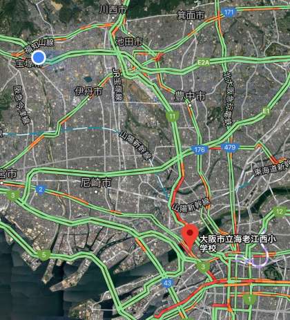 14時43分、中国自動車道の宝塚ICを通過しました。