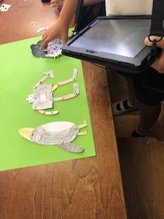 ペープサートの関節が動くように作り、少しずつ動かして1枚ずつ撮影していきます。