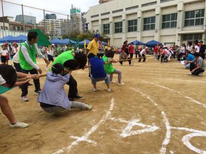 ○町会対抗スリッパ飛ばし(なかなか難しい。スリッパの代わりに自分が転ぶことも?)