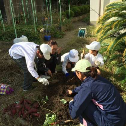 10月16日(木)なかよしの子ども達が育てていた「さつまいも」を収穫しました。