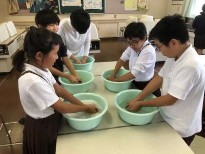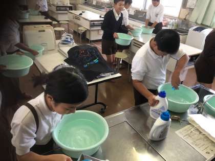 体育で走り高跳びをして汚れてしまった自分の靴下を手洗いできれいにしました。