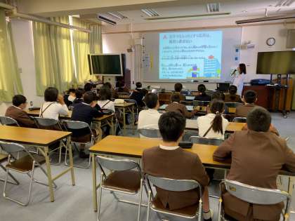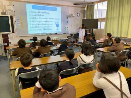 学校薬剤師の大岩先生先生に来校していただき、薬の正しい使い方について教えていただきました。