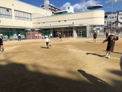不安定な昨日の天気とうって変わり、秋晴れの今日、校舎から出てきた海西っ子は運動場で元気に遊びます。各学年それぞれの遊び方で楽しく遊ぶ声が運動場に響き渡ります。勉強も大切ですが、遊ぶことも大切です。体作り、社会性の育成、仲間づくり遊びには子どもたちを育てる様々な要素があると言われています。晴れの日は外で元気に遊ぶことを奨励しています。学級みんなで遊ぶ、みんな遊びをしている学級もあります。